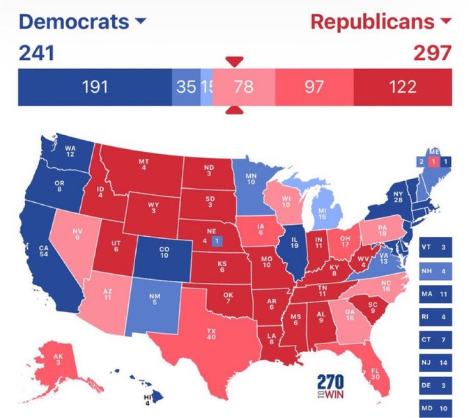 他说,贺锦丽入主白宫的选举人票各种组合方式,共和党已经逐一击破,“蓝墙”(blue wall)三州是贺锦丽最后防线,“但她在威州极为不妙,宾州也一样”。