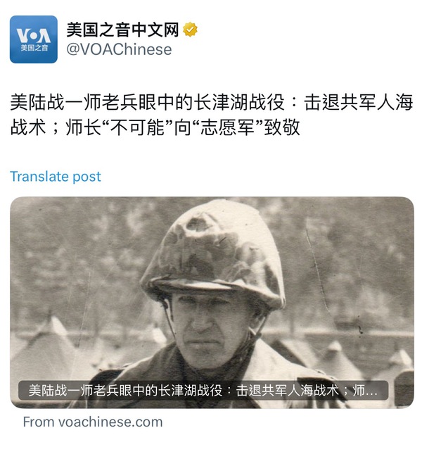 回顧這段歷史,海军陆战队退役上校、亚太事务专家格兰特·纽山姆接受美國之音專訪说:「美军在长津湖的突围能力,使得美国的对手在挑战美国时必须三思。上校說:我們要捍衛的是自由的理念,跟我們交手的對手要三思而行。」