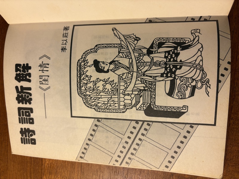 從電影藝術中分析蒙太奇思維,是一個角度;而從古典詩詞中探討蒙太奇的思維,又是一個角度。李以莊這本《詩詞新解》之所以和近年流行的許多鑒賞、賞析、賞會之類的著作有著不同的特點,就在這一點上。她是以電影藝術研究者的心靈和眼光,去看待人們熟知熟悉的古典詩詞的,其中不少篇章都在發揮她的「蒙太奇思維乃是中國詩詞本來具有的」這一論點。