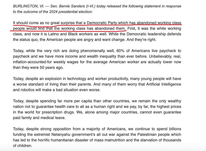 “It should come as no great surprise that a Democratic Party which has abandoned working class people would find that the working class has abandoned them."