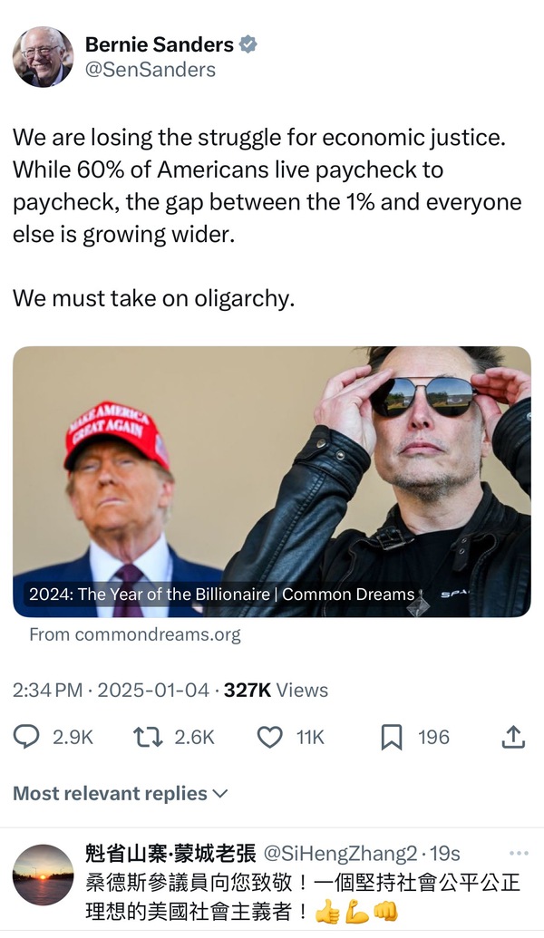 【伯尼·桑德斯參議員「一個美國社會主義者的進步派宣言」】~ 𣁽省山寨
