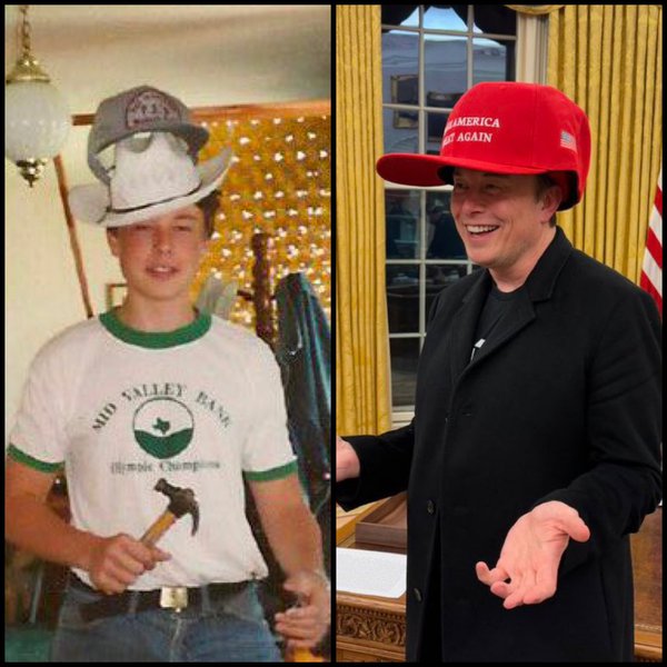 马斯克和塔克带的大帽子,寓意是,现在的美国政府,远远超出了正常的联邦政府的规模,大的离谱。
