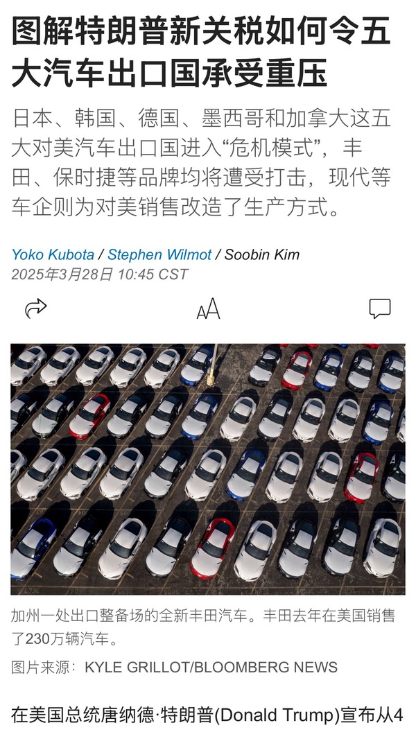 我們以徵收汽車關稅為例:“非美國生產的汽車加徵25%的關稅”,但是“美國造汽車絕對不會”,4/2號實施,這是目前川普對外經濟政策中最震撼的動作。