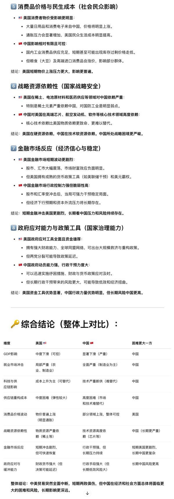 总结:openai的DR报告更deep,报告内容字数略少于google,但是全文都紧密围绕问题本身,从GDP影响、就业、科技产业链、供应链中断、消费品价格这些角度深度分析;