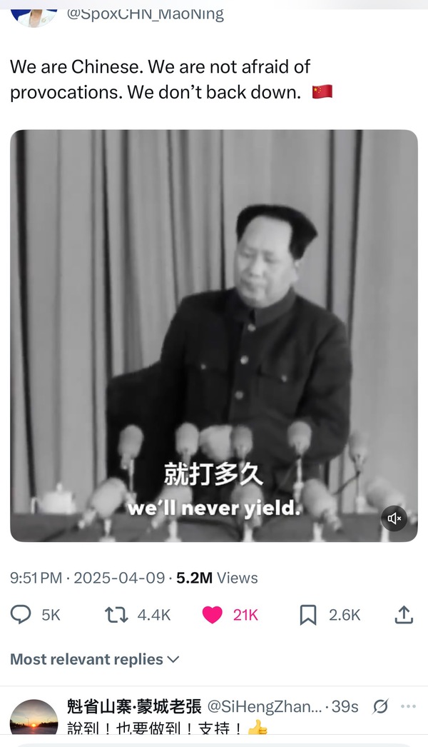 【中美關稅硬剛不停頓…(川哥必須要明白他面對的中国领导人是文革成長起來的一代人)】~ 𣁽省山寨