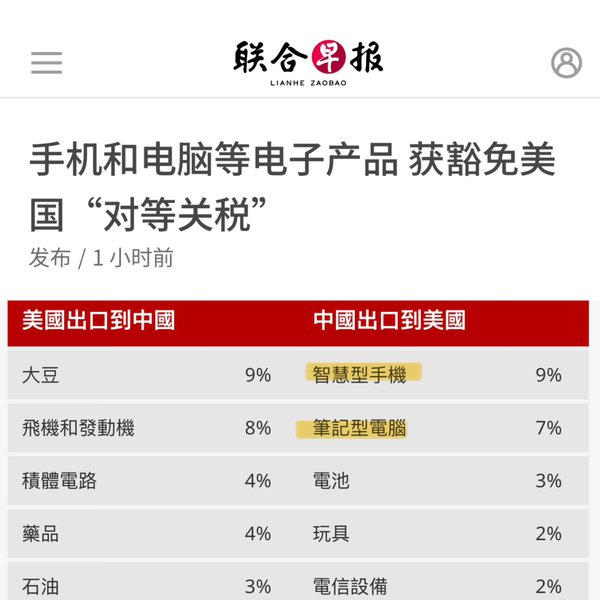 【中美博弈第一回合:美方对电子半导体等主动降低关税 川哥認慫了嗎?】~ 𣁽省山寨