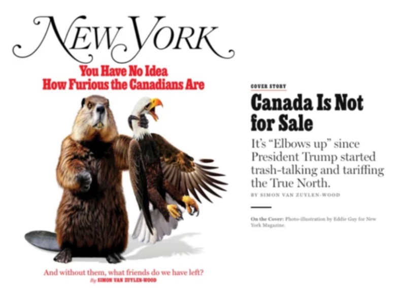 最新一期《纽约》杂志的封面生动捕捉了这种情绪:一只愤怒的海狸锁喉瘦弱的白头鹰,标题写道:“你根本不知道加拿大人有多愤怒。”特约撰稿人西蒙·范·祖伊伦-伍德(Simon van Zuylen-Wood)在多伦多驻留一个月,亲身感受到反美情绪的汹涌。在机场报刊亭,《Maclean’s》杂志封面赫然写着《选择加拿大的20个理由》,主编专栏甚至呼吁取消前往美国马萨诸塞州的度假计划。下一期杂志的预告内容包括“为什么加拿大永远不会成为美国的一个州”以及“如何反击特朗普的关税”,字里行间透露出强烈的民族自豪感与对美国的戒备。