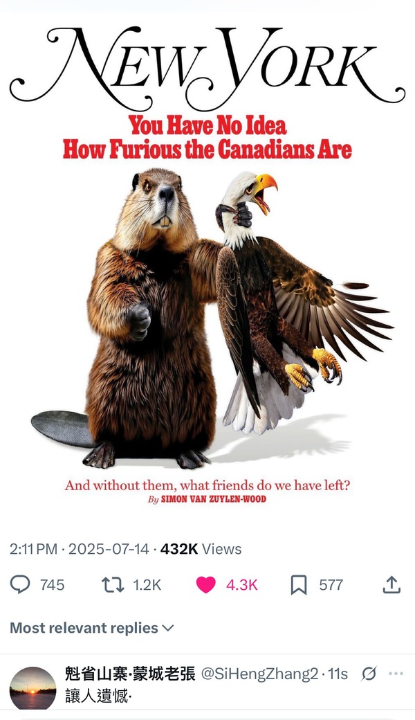 ~美国川普政府对加拿大征收关税的政策措施,加拿大从政府高層到民间百姓都目瞪口呆 難以置信 极度愤怒,在痛斥美国的强盗般背叛的同时,民众也痛斥自由党政府的无能,積極反思反省加拿大未來何去何從,但没有人包容理解美国的政策。
