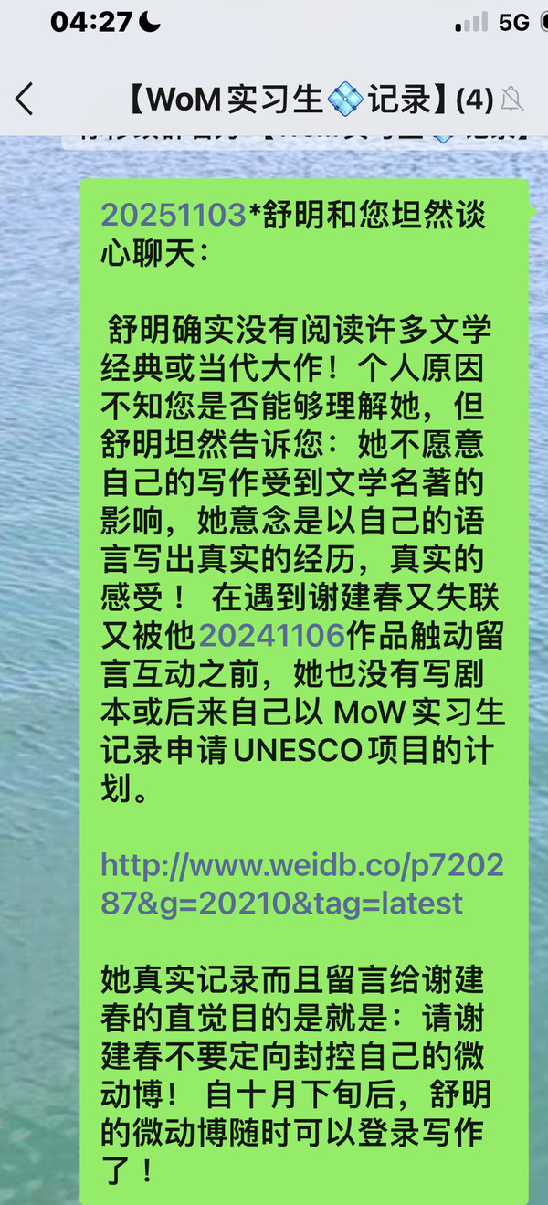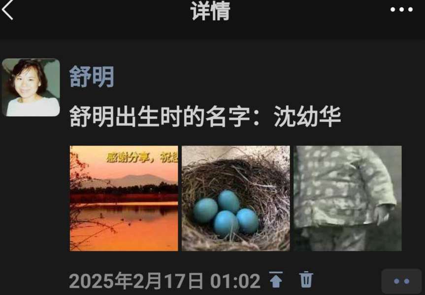 2024年谢建春ç§ä¿¡èˆ’明时æŸç¯‡è®¿è°ˆæ–‡ç« 里,舒明记ä½äº†è¿™ä¸ªç”Ÿæ—¥ã€‚é‚£ç¯‡æ–‡ç« èˆ’æ˜Žæ‹…å¿ƒå¤ªå¤šç§äººè¯ä»¶ç…§ç‰‡ï¼Œå会会员å·ç ï¼Œèˆ’æ˜Žä¸æ’’谎,在20240611ï¼Œå‰æž—äº‹ä»¶ï¼ˆç¾Žå›½å››ä½æ•™æŽˆè¢«ç 伤,舒明直觉两人微信会失è”)åŽï¼Œå¥¹åˆ 除了谢建春ç§äººç…§ç‰‡ä¸ŽèŠå¤©è®°å½•,留下了一些谢建春的纯粹作å“分享èŠå¤©è®°å½•。