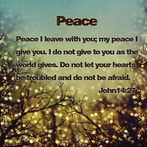 Sensing how perplexed and troubled His disciples were, Jesus paused to give them peace and assurance. He said, "Peace I leave with you; my peace I give you. I do not give to you as the world gives. Do not let your hearts be troubled and do not be afraid." The peace Jesus leaves with the believers is not just another brand of peace, but this is His peace. He gives the gift of His own peace, the state of His own inner being. Since we have His peace, we are backed up by the power and wisdom of God. This promise is for those who trust Jesus and depend on Him. Peace can be had, but the choice has to be made. When trouble, anxiety or fearful forebodings threaten to overwhelm us, turn to Him. Choose to confess our fear and ask for His help in trusting Him.