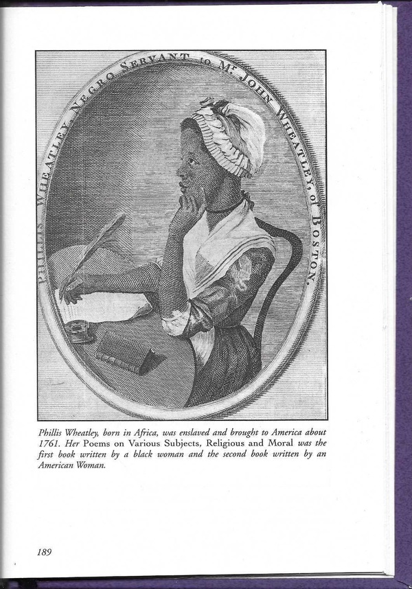 Phillis Wheatley 是一个大约1761年被贩卖到美国的女黑奴,她写的诗歌美国黑人出版的第一本著作,也是美国女性出版的第二本书。