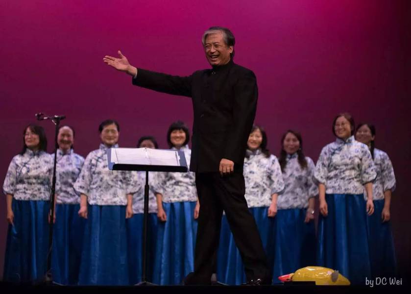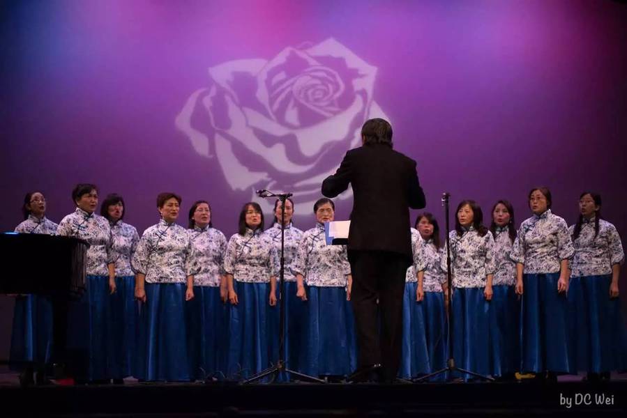 下面由CACC 合唱班为我们带来女声小组唱。她们在著名男高音歌唱家谈柏年的指挥下,为观众献上了三首歌:送我一支玫瑰花,灯碗碗开花在窗台,回娘家。她们唱”回娘家“歌时,还颇有创意地准备了鸡和鸭的道具,灰常诙谐有趣,逗得观众发出阵阵笑声。