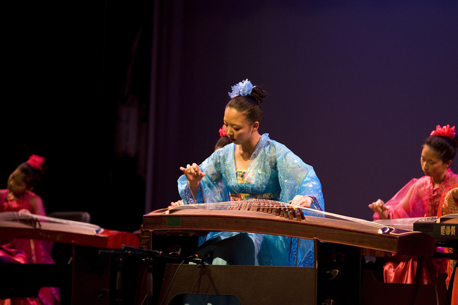 古筝演奏家李欢指导CACC古筝合奏:金蛇狂舞。琴声时而如山涧的潺潺流水,时而若大河的奔腾浪花,让人如痴如醉。