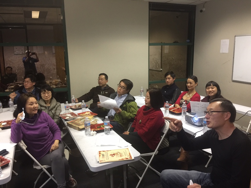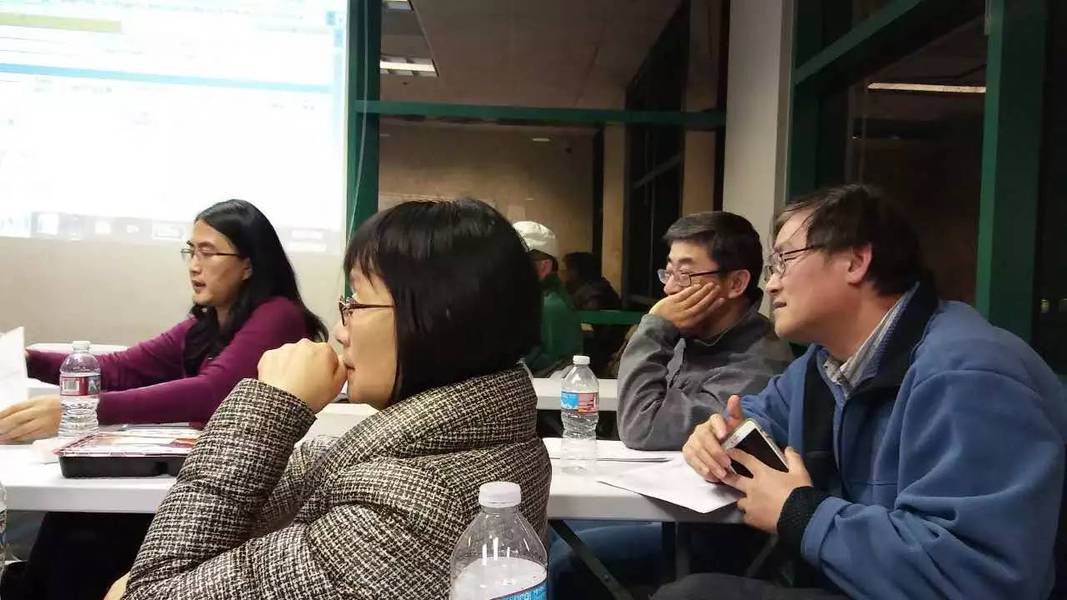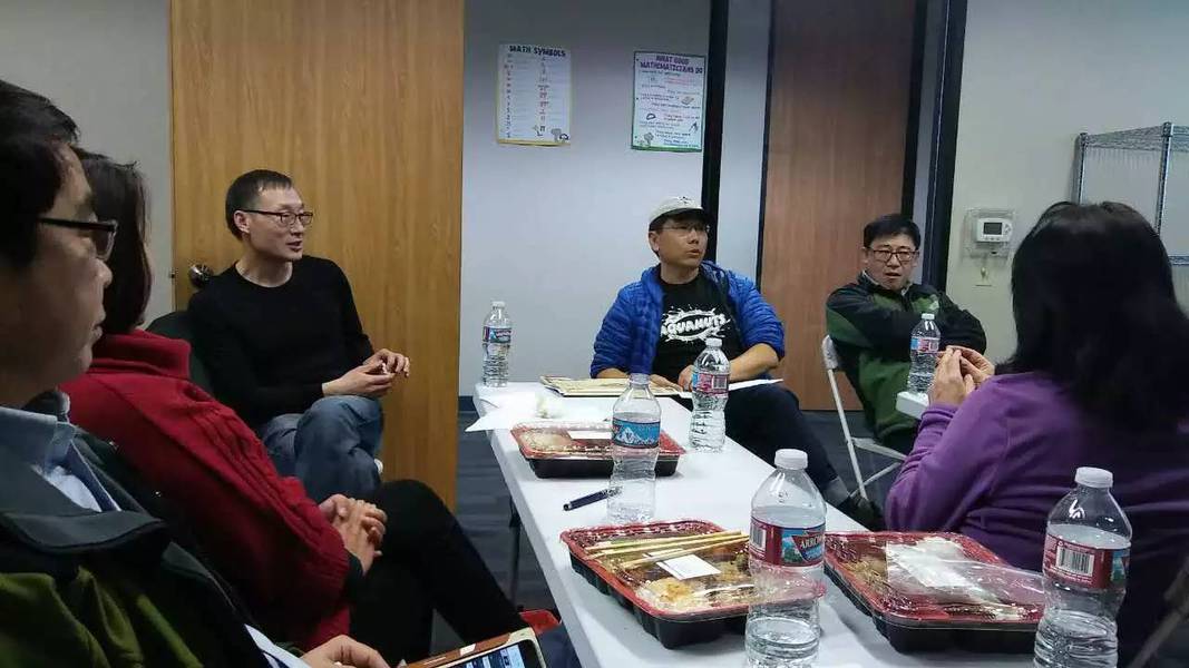 晚会前些天,组织者们花了许多时间在仔细讨论晚会的节目安排和各项准备工作。下图左前:Lina Tan, 左后:Qingsong Zhang, 右一:Frank Huang