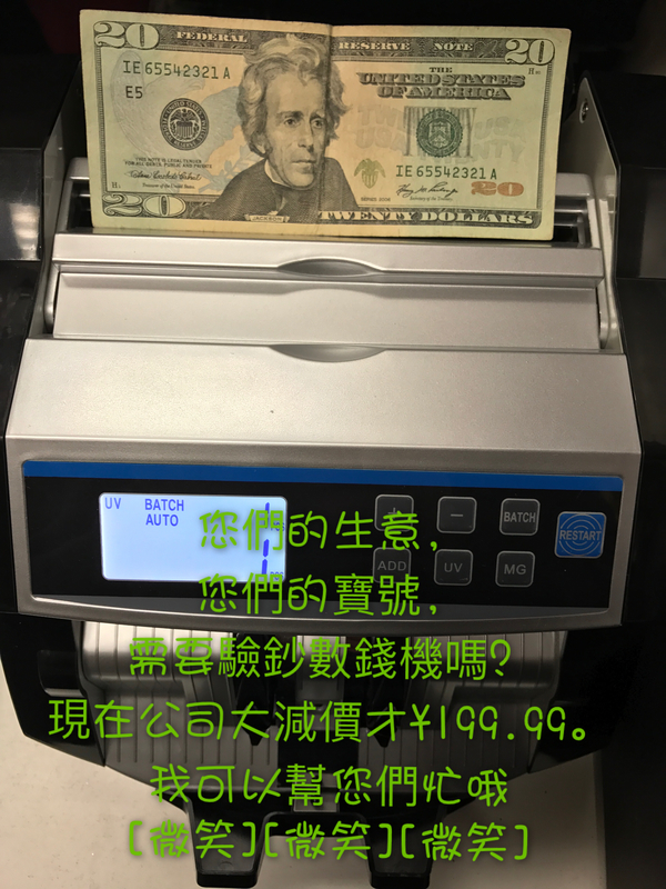 一機在握,獲利萬千,智能驗鈔數錢機,每部才售$199.99美元!