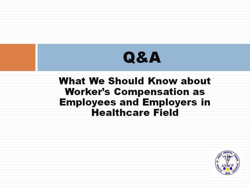 讲座题目:What should we know about worker's compensation as employees and employers in healthcare field?