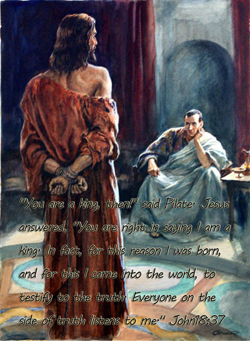 and for this I came into the world, to testify to the truth." Jesus spoke