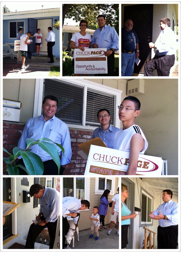 以前我不知道Chuck Page 每天都花时间挨家挨户敲门扫街,但我知道,Chuck 不但有 Saratoga City Council 职责要履行,忙于各种竞选事务,兼职很多社区职务,还要赚钱养家,所以,即使他没有时间来扫街,我完全理解。