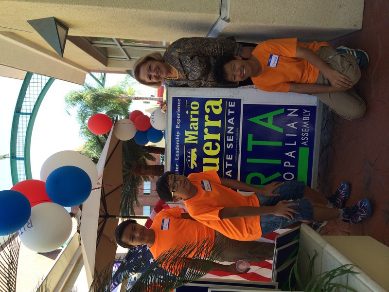 The Orange Wave继续席卷南加,今天TOC的青少年义工来到Whittier市参加州议员候选人Rita Topalian的campaign kick-off活动,并帮她扫街拜票。