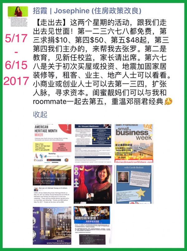 【走出去】在三藩市您已经很进取,却深感局限在自己的圈子里,资讯和眼界有待提高?或者苦于新移民、人生地不熟、英文不好、人脉不广?没有问题!亚裔选民协会与您分享我们组织的、或者支持的活动,成为您成功契机的导游,跟我们走出去日蒲夜蒲见世面!