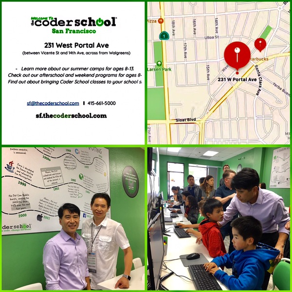 【Coder School免费试课】5/20-5/27,每天10am-2pm,「小小程序员」学校免费试课!就在231 West Portal,富国银行旁边。有讲中文的老师。欢迎大家这个周末带孩子们去参观和试读。如果在5/31前报读暑期班,每个星期有$100的折扣!(原价$499/周)。可以读一周、N周,或者选日子读。这所是我的高科技朋友们开的编程学校,信得过。- SUMMER CAMPS: We're enrolling for weekly camps from 6/12 to 8/18. Camps are 9am-3pm, with optional extended care until 6pm. Daily activities include coding, outdoor lunch & playtime, math puzzles, board games, and free choice time. During May, we're offering a $100 discount for all camps. For more info or to sign up, visit http://sf.thecoderschool.com. - FREE TRIALS: We're now scheduling free trial sessions for Saturday May 20 and Saturday May 27 between 10am and 2pm. Email sf@thecoderschool.com to request a free trial slot for your children