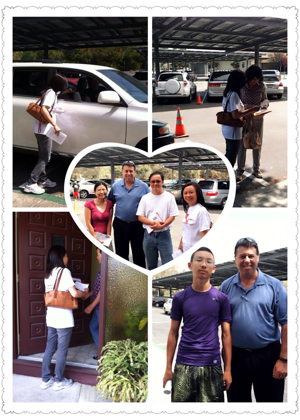 在中文学校发完传单后,我们去了Campbell扫街。敲到一个广东来的老妈妈的门。老人不会英文,也不会国语只会广东话。我们便用流利的广东话开讲。 老人听完,答应一家八口人都会投Chuck Page。 我们还请求老人和自己的朋友和邻居宣传去注册为选民,去投Chuck Page. 老人马上对我们说,我的隔壁邻居是华人。 我们没有看见邻居在登记选民中,所以知道他们没有注册,请老人去说服,老人马上答应下来。