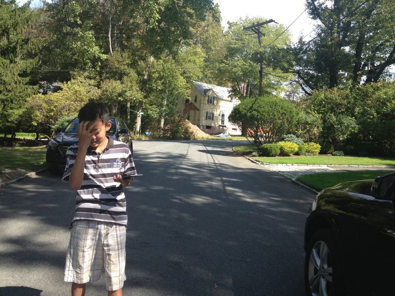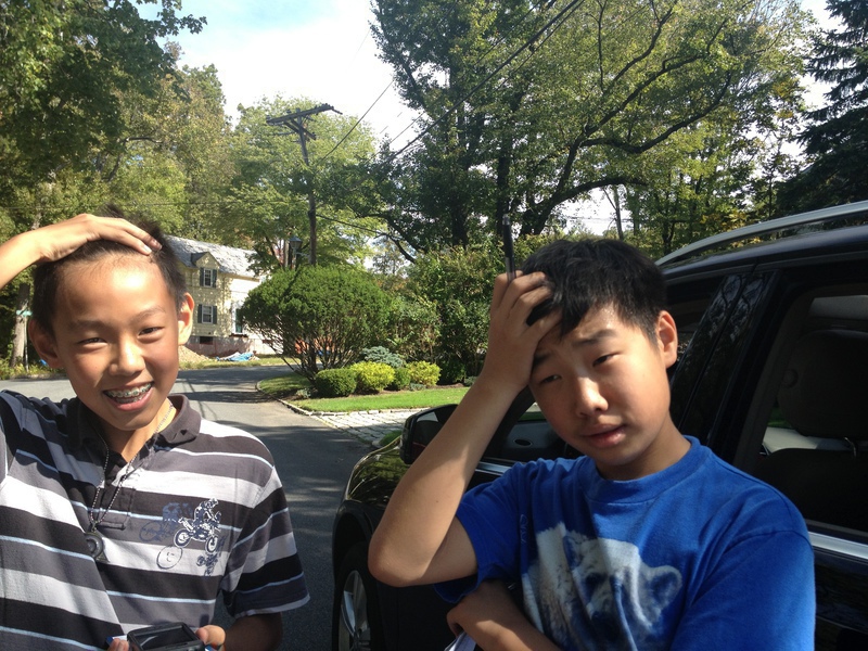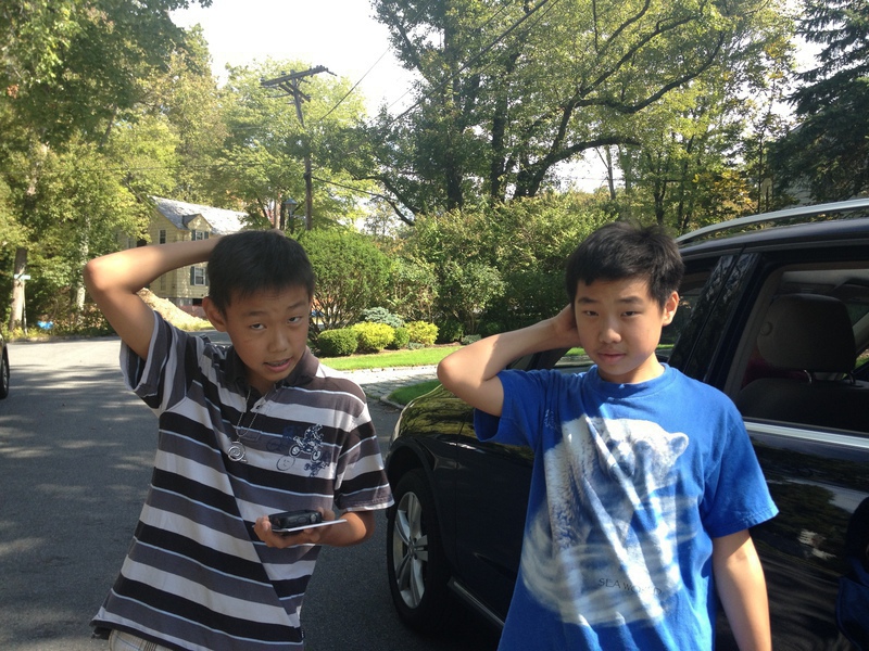 Arnold昨天才知道今天是Andrew生日,最近全力助选没时间买东西,匆忙中只好拿了一盒巧克力饼干权作生日礼物。秋老虎非常厉害,大晌午顶着阳光在路上走了一小时后,俩孩子已经满头大汗,就直接把快化了的饼干拿出来开吃了!