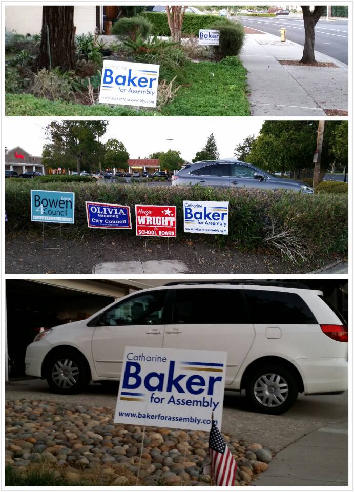 综合这两次扫街, 我交谈的11家邻居中, 7家支持Baker, 3家要考虑, 1家是加拿大籍无投票权. 扫街成绩亮丽. 但有点要注意的是: 大部分家庭对本次加州大选还不太重视, 更不用说了解候选人了. 预示着本次大选的投票率可能偏低. 我们义工们需再接再厉, 抓紧大选前的点点滴滴时间为Baker 助选, 鼓动更多的选民出来投票. 形式可以是多种多样, 不拘一格, 有钱出钱, 有力出力. 扫街, 打电话, 捐款, 发传单, 主持Baker见面会或各种活动, 在家门前放 Yard sign等等. 是公民的朋友请立刻注册为选民,并及时投票。
