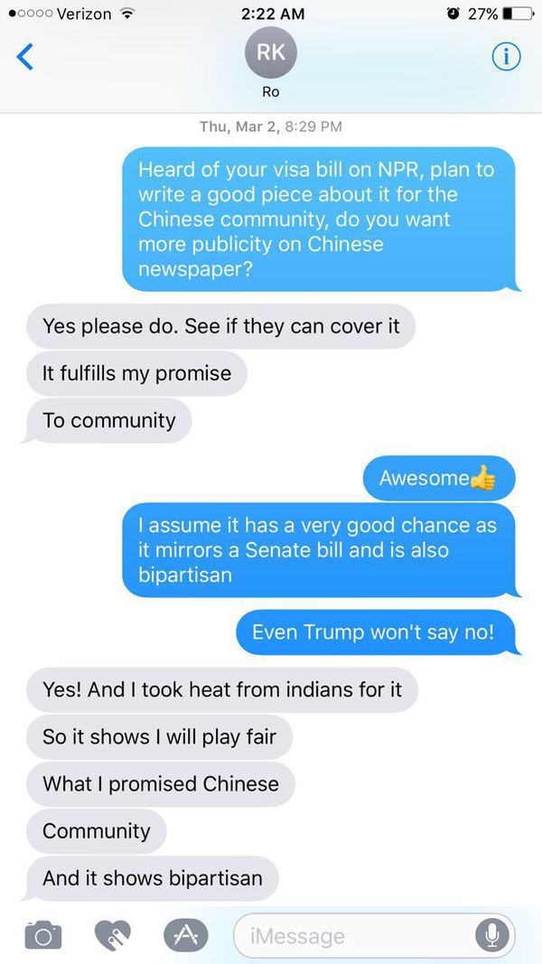 2016 帮 Ro Khanna 竞选的过程中,多次不断向他提出这个问题,希望他能够了解 ICC 是他所代表的硅谷的一个大问题。由于印度裔的身份,他一直觉得这个问题有些敏感为难。所以我对他并不抱太大希望,因为这毕竟不是他竞选
