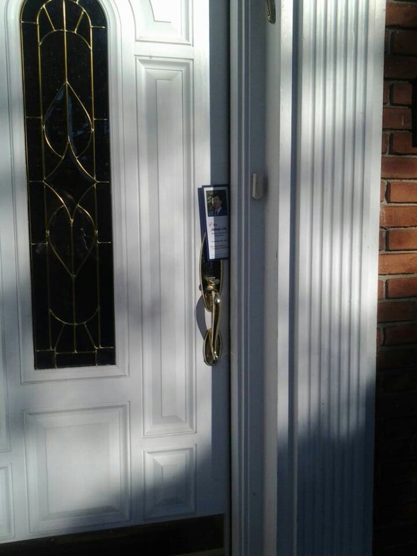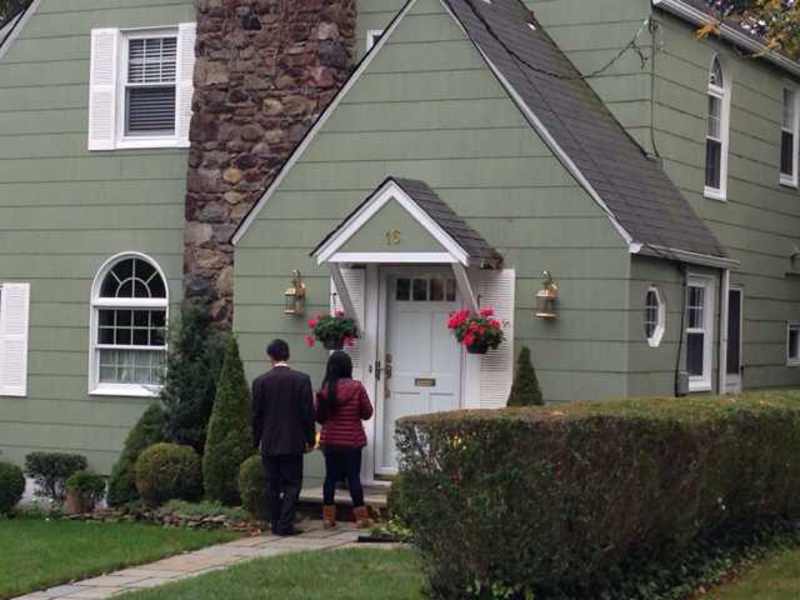From Hongxia:"碰巧子奇夫人Jenny带着她的千金到我家drop off我的千金,就聊起了扫街的事。她立马就让说可以和我一起去。我们在后院把宣传资料总结成三点,带着两个女娃娃,已经吃的喝的,设好GPS,选一个住户密集的街道,就出发了 。按照表上的地址,一家一户敲门。第一家似乎就有些怪。里面马上听到狗叫声,已经人的声音,但最后只是听到门被锁住的声音,一直没有人开门。于是按扫街指示,把flyer贴在门上。谁知女儿说,贴在门上很rude。接下来我们就改变flyer的位置,以免被小老美看不惯。边这样放,我边说,对不起了,Jesse,受委屈了。”