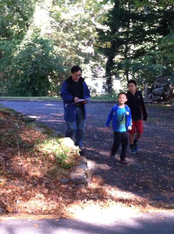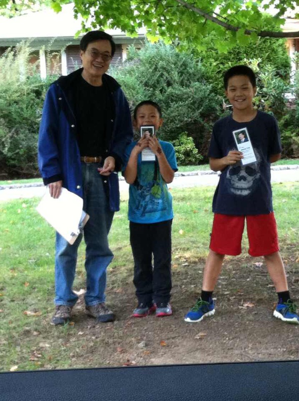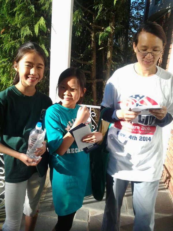 From Charles He: "今天天气不错。夫人开车,全家扫街 - 为朋友竞选本镇Board of Education拉选票。孩子们兴致颇高 - 两个半小时敲了四十家门。华人参政意识渐强,走势喜人。"