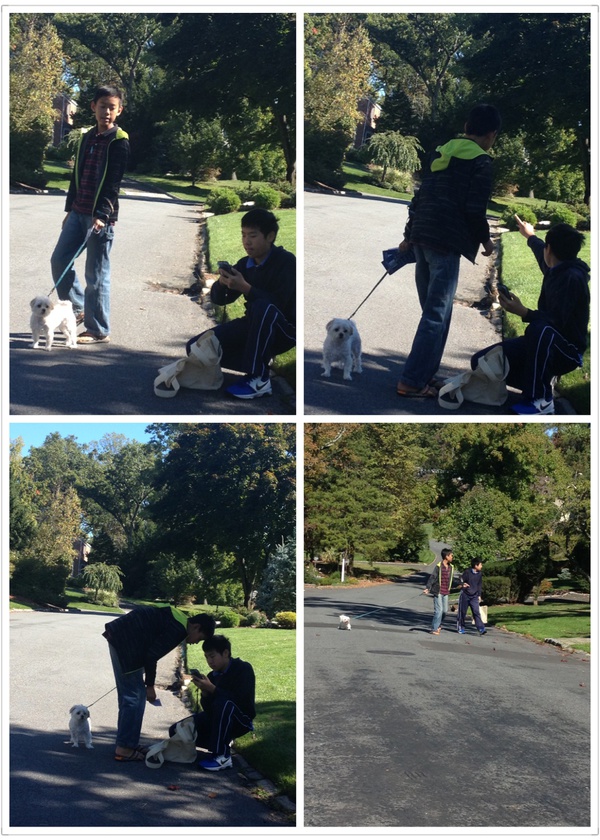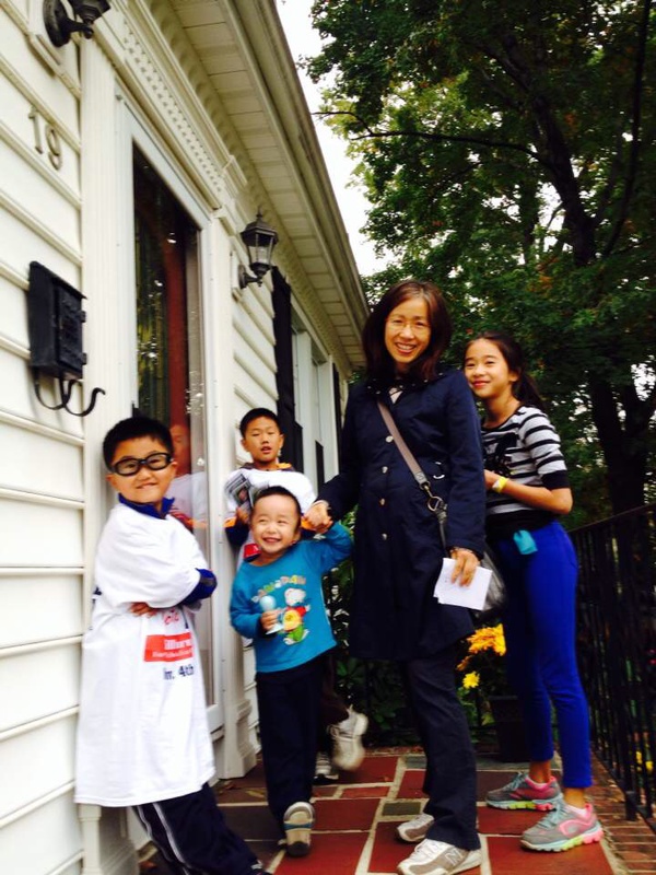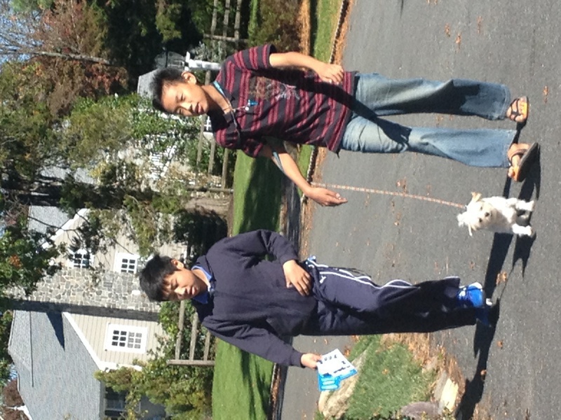 周日早晨扫街小分队高中生Audrey, Claire, Abby开始, 中午Arnold 和 Andrew继续敲剩下的街道,还带着朋友托管的小狗Happie。秋高气爽,带着宠物,一路小跑,看上去很惬意,实际这一片很难找,也是锻炼孩子们耐心了。高中生Megan 和Christine 的组也在继续。