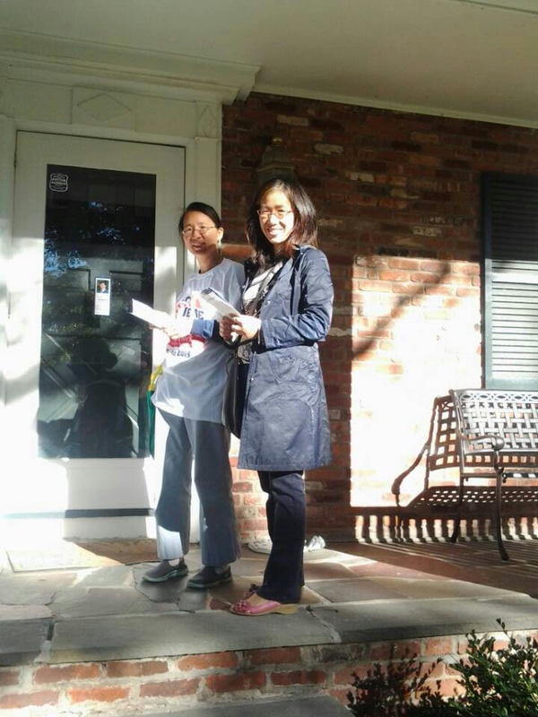 From Meilee Zheng: 刚刚花了俩小时扫街拜票,都是美国家庭,拜得有十多票,其他说会Seriously Consider 他。