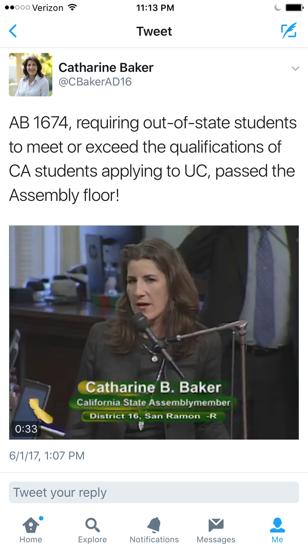 第四出场的是加州共和党人Catharine Baker,新近和另外两人共同起草了一个法案,已经以无人反对的压倒多数通过众议院,正在闯关参议院。