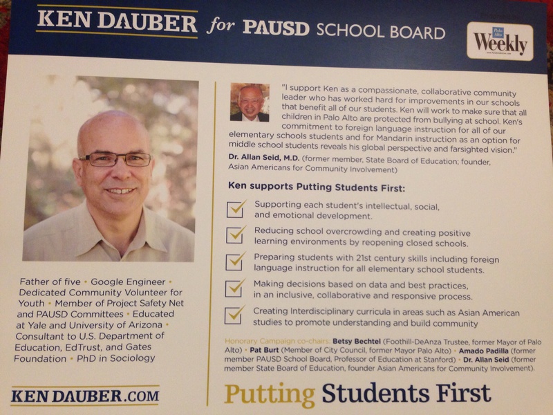 I am running for a seat on the PAUSD School Board. I have been informed that there are some mistaken statements from other people about my positions and some facts that have been repeated on WeChat. I would like to take this opportunity to state corrections where I have heard about mistakes.