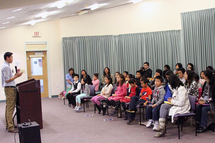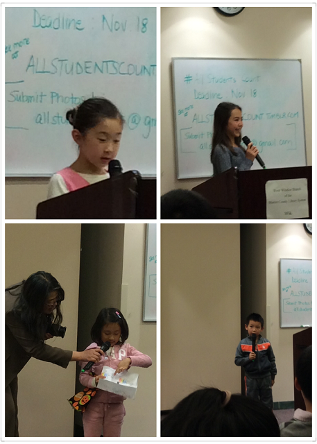 可喜的是一些家长们意识到the power of words,倍而爽团队家长不辞辛劳带孩子来演讲,又赶去排练演出。感谢Kathy从夏天就开始联络图书馆,Aaron 安装麦克风。相信来讲的和听的都受益匪浅。