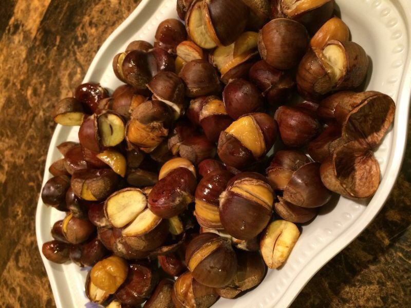 再加一个tip, 烤二十分钟后盖上锡纸再烤十分钟,栗子不干而且不怕爆