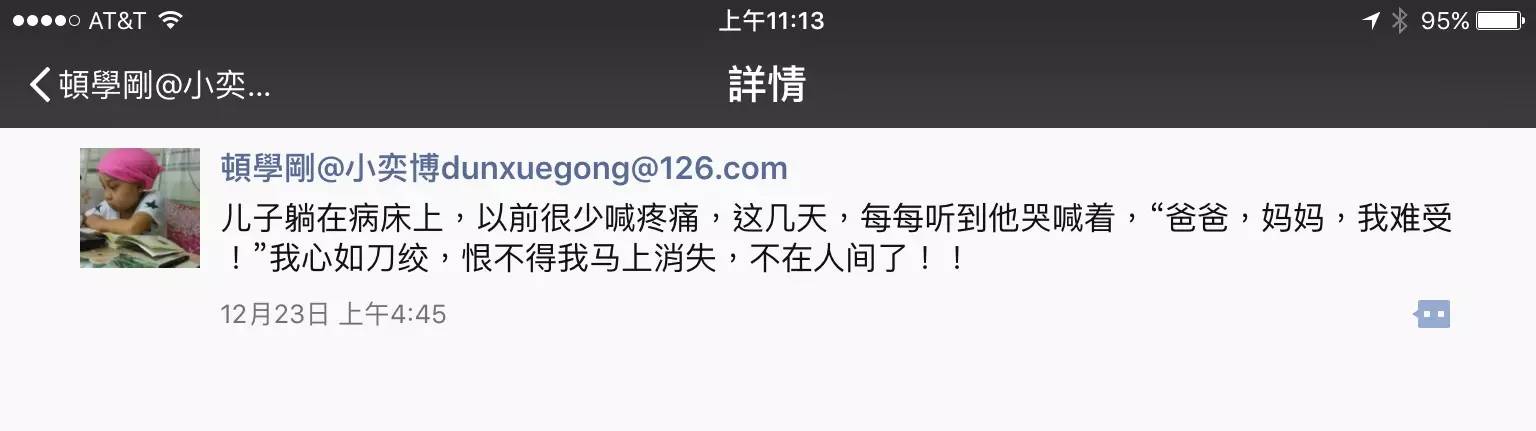 儿子的一席话让我不知怎么回答,“我在济南已经受了三个月的罪,又去天津,合肥,我不想再打针了,我已经住院有半年了,我也不知到家是什么样了,我连家都没有了,我原来的头肿都好了,又不知患上什么病了,我也不能去玩了,过年也不能去上学...”虽然他还不知自己患了白血病,更不知这病的严重,但他心里很有数,他也明白...在床上睡了近三个月,孩子真的不易!他真的急了!!